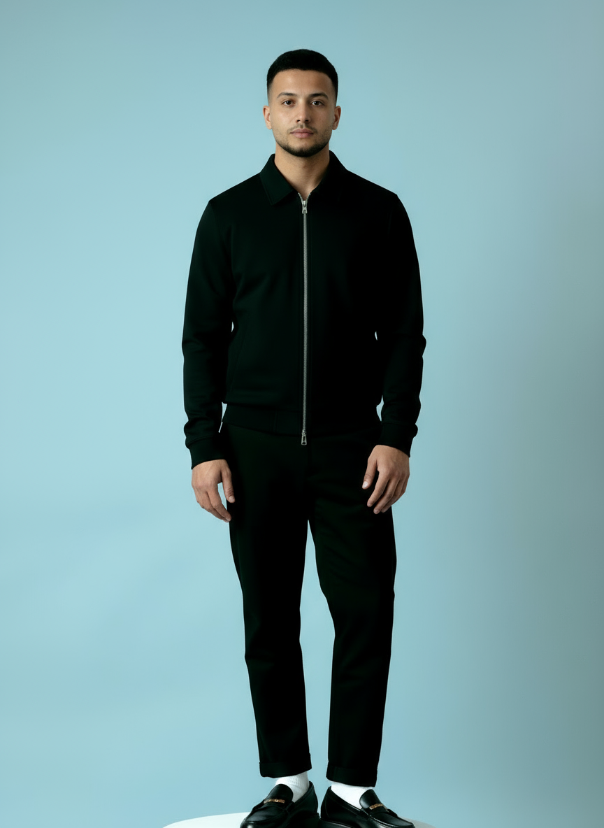 De middelzware stof voelt stevig maar soepel aan en biedt optimaal draagcomfort. De zilverkleurige rits en subtiel geplaatste steekzakken versterken het tijdloze silhouet, terwijl de gestructureerde pasvorm zorgt voor een luxe uitstraling — zowel casual als dressed.