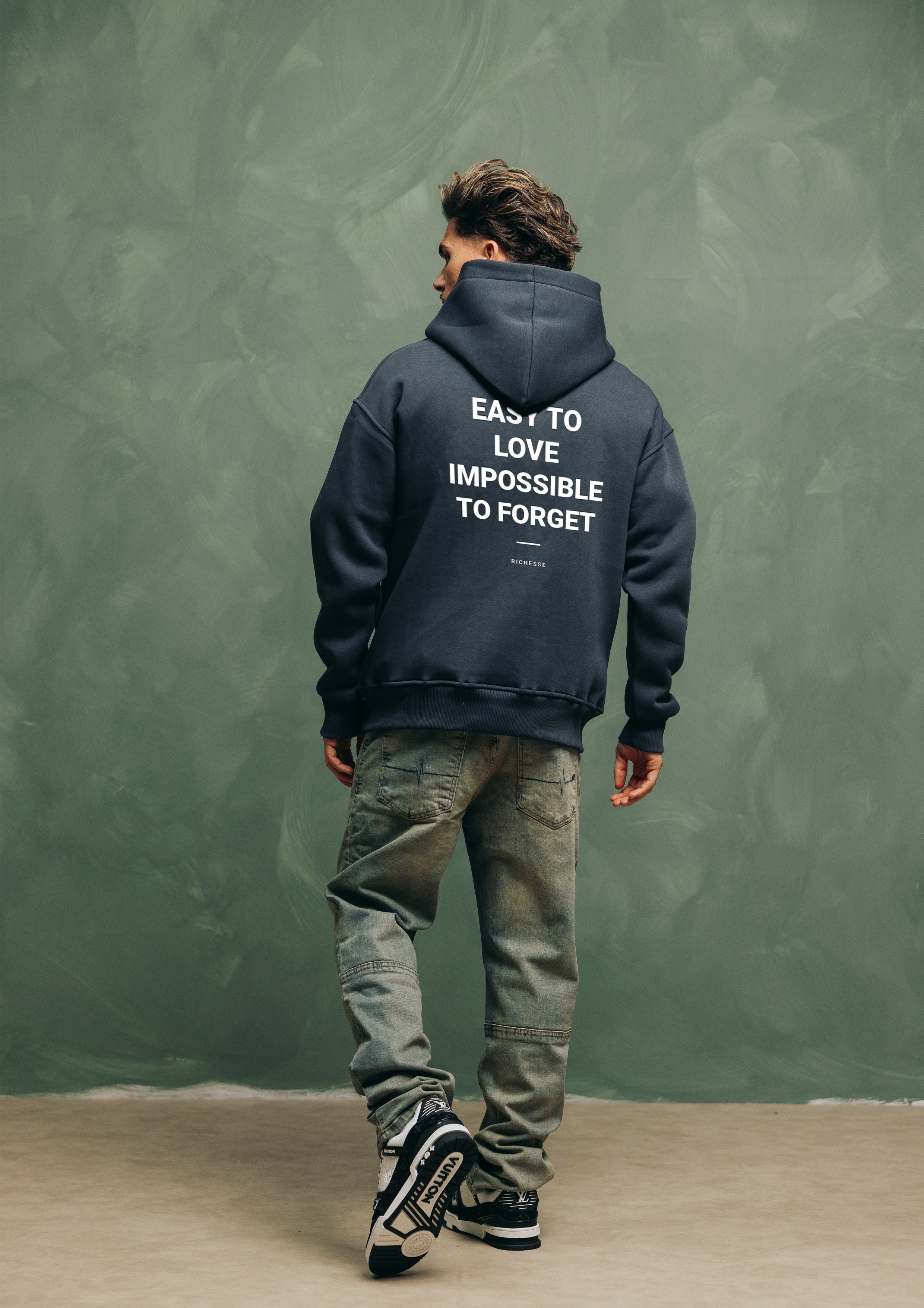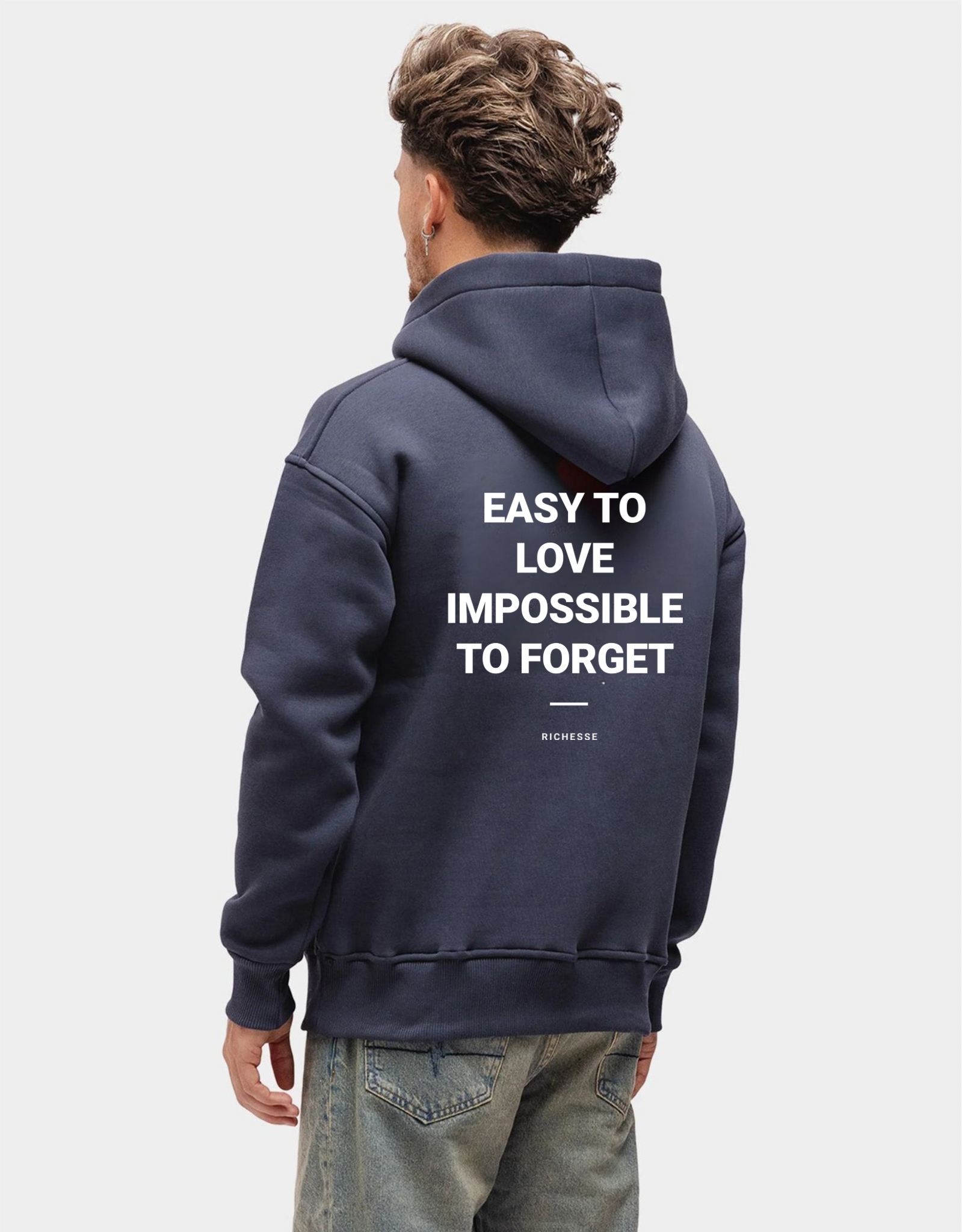 "Easy To Love Impossible To Forget" One of the unique models of the Richesse collection. Combine this item with cool jeans from Richesse and let the text on the back do the work.
