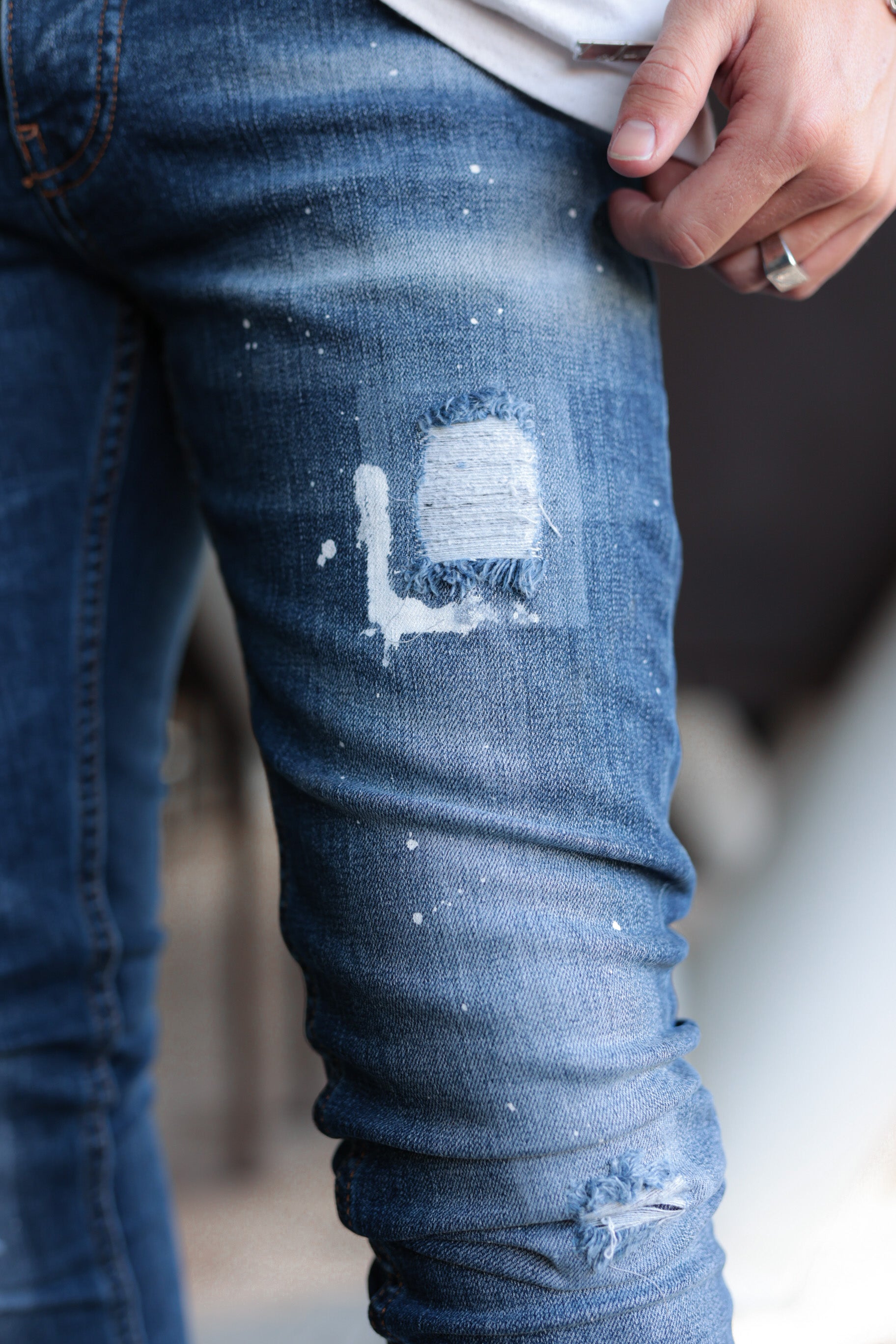 De nieuwe jeans van Richesse zijn tot in elk detail uitgewerkt. Het merklabel van Richesse is in de nieuwe collectie stoer uitgewerkt op de voor- en achterzak. De jeans hebben een metalen logo aan de voorkant waardoor je gelijk opvalt. Er zit een lichte wassing met scheuren op de jeans, die uiteraard goed zijn afgedekt door middel van een extra laag achter de scheur.
