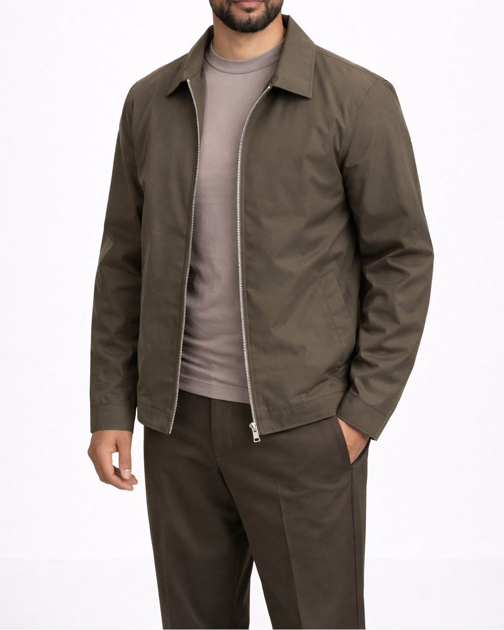 De middelzware stof voelt stevig maar soepel aan en biedt optimaal draagcomfort. De zilverkleurige rits en subtiel geplaatste steekzakken versterken het tijdloze silhouet, terwijl de gestructureerde pasvorm zorgt voor een luxe uitstraling — zowel casual als dressed.